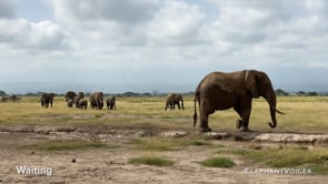 In a Calf Reassurance & Protection context, mothers and allomothers are often seen Waiting for infants and calves; in a Courtship context, Consorting musth male and estrous female are observed to Wait for one another in order to maintain a certain proximity, to prevent other males from Mating. In a Movement Space & Leadership context, elephants of all age/sex groups Wait for one another to keep the family or group together.