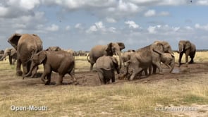 All age/sex groups may be observed displaying Open-Mouth, but it is much more common among female elephants than among males. Males might be observed exhibiting Open-Mouth when Roaring in protest in a Submissive context, while females show Open-Mouth in Affiliative, Aggressive, Movement Space & Leadership, Coalition Building, Birth, Advertisement & Attraction and Submission contexts. Infants and calves will exhibit Open-Mouth in a Calf Protection and Reassurance context.