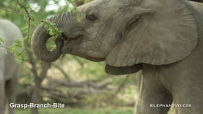 Grasp branch or branchlet with the trunk and then move the head into position so as to bite it off with the teeth.